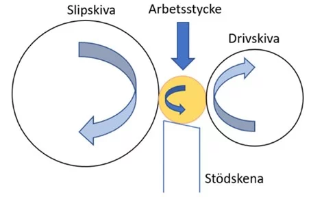 Det är en typ av rundslipning som ofta används som steg ett efter värmebehandling. Namnet centerlesslipning beskriver hur metoden fungerar, det vill säga slipningen sker utan ett fast centrum eller fixtur utan ”kläms” mellan driv- och slipskiva och stöttar mot en skena i underkant.